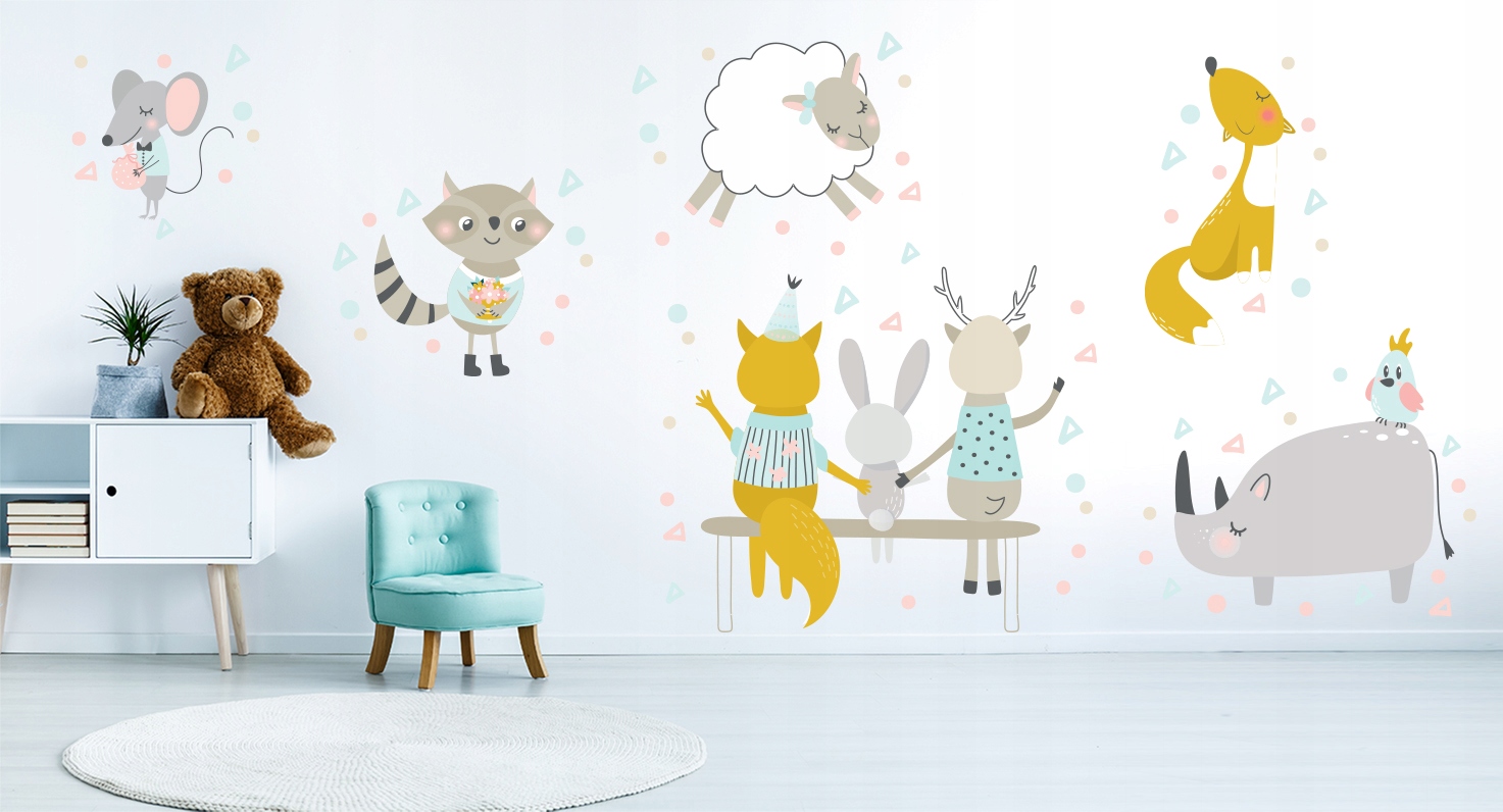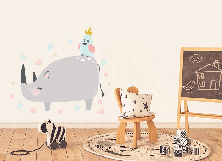 UWAGA! Tytuł aukcji u góry ekranu został wygenerowany przez automat Allegro, który lubi się mylić. Na komputerze właściwy tytuł aukcji jest po prawej stronie ekranu nie po lewej, natomiast na telefonie poniżej zdjęcia. Prosimy o sugerowanie się WYŁĄCZNIE poniższym opisem, który zawiera prawidłowe dane o oferowanym przedmiocie: ֺNAKLEJKI NA ŚCIANĘ DUŻE Zwierzaki N002-000WITAMY PAŃSTWA W NASZYM SKLEPIE Na dzisiejszej aukcji chcemy Państwu zaprezentować naklejkę ścienną, drukowaną w w technologii UV. Naklejka NOSOROŻEC + elementy dekoracyjne. Całość mieści się na arkuszu o wymiarach ok. 90×105 cm. Zestaw naklejony jest na folię transportową w celu ułatwienia aplikacji na wybraną powierzchnię.Nasze naklejki można umieszczać na wszystkich płaskich powierzchniach jak meble, drzwi, szyby, ściany itp. Ten wzór naklejki, można skompletować z innymi naklejkami z tej samej serii (dopasowanej graficznie), które wystawiamy na osobnych aukcjach. Przykładowa aranżacja kompletu większej ilości naklejek na jednej ścianie, poniżej. PAMIĘTAJ: KUPUJĄC NA RÓŻNYCH NASZYCH AUKCJACH ZA PRZESYŁKĘ PŁACISZ TYLKO RAZ
