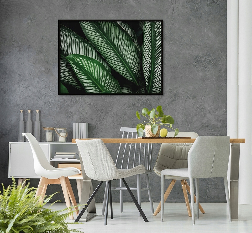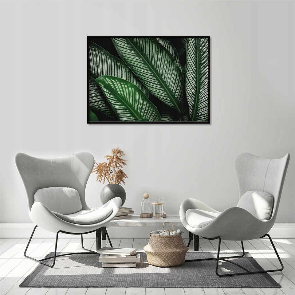 OBRAZ PLAKAT W RAMIE 33×43 cm Liście Poziom P919Oferujemy Państwu nowoczesne plakaty-obrazy w ramach, stworzone w naszym studiu graficznym i wydrukowane na wysokiej jakości papierze foto. Nasze obrazy, to kompletny produkt, gotowy do zawieszenia na ścianie! Obraz zawiera: plakat High Resolution  – cyfrowy druk wysokiej jakościramę drewnianą – jest lekka, a zarazem trwała i ponadczasowapleksi przeźroczyste o grubości 1 mm – bezpieczne (nie tłukące się, jak np. szkło), lekkie i estetyczne zabezpieczenie obrazuplecki – doskonałe usztywnieniemetalową zawieszkę umocowaną z tyłumetalowe blaszki, przymocowane do ramy Uwaga: Plakaty oprawiamy w czarne ramki. Na życzenie Klienta istnieje możliwość zmiany koloru ramki na inny, z naszej oferty.SPECYFIKACJA  Obrazy drukujemy na wysokiej jakości papierze plakatowym: DRUK: cyfrowy, wysokiej rozdzielczościPAPIER: fotograficzny, gramatura 250 gWYMIARY plakatu: 30×40 cmWYMIARY z ramką: 33×43 cmNasze obrazy można łączyć z pozostałymi obrazami i plaktami z naszej oferty, tworząc własne, indywidualne zestawy. Obrazy są produkowane i dostarczane do Państwa, bezpośrednio z naszej siedziby w Polsce.
