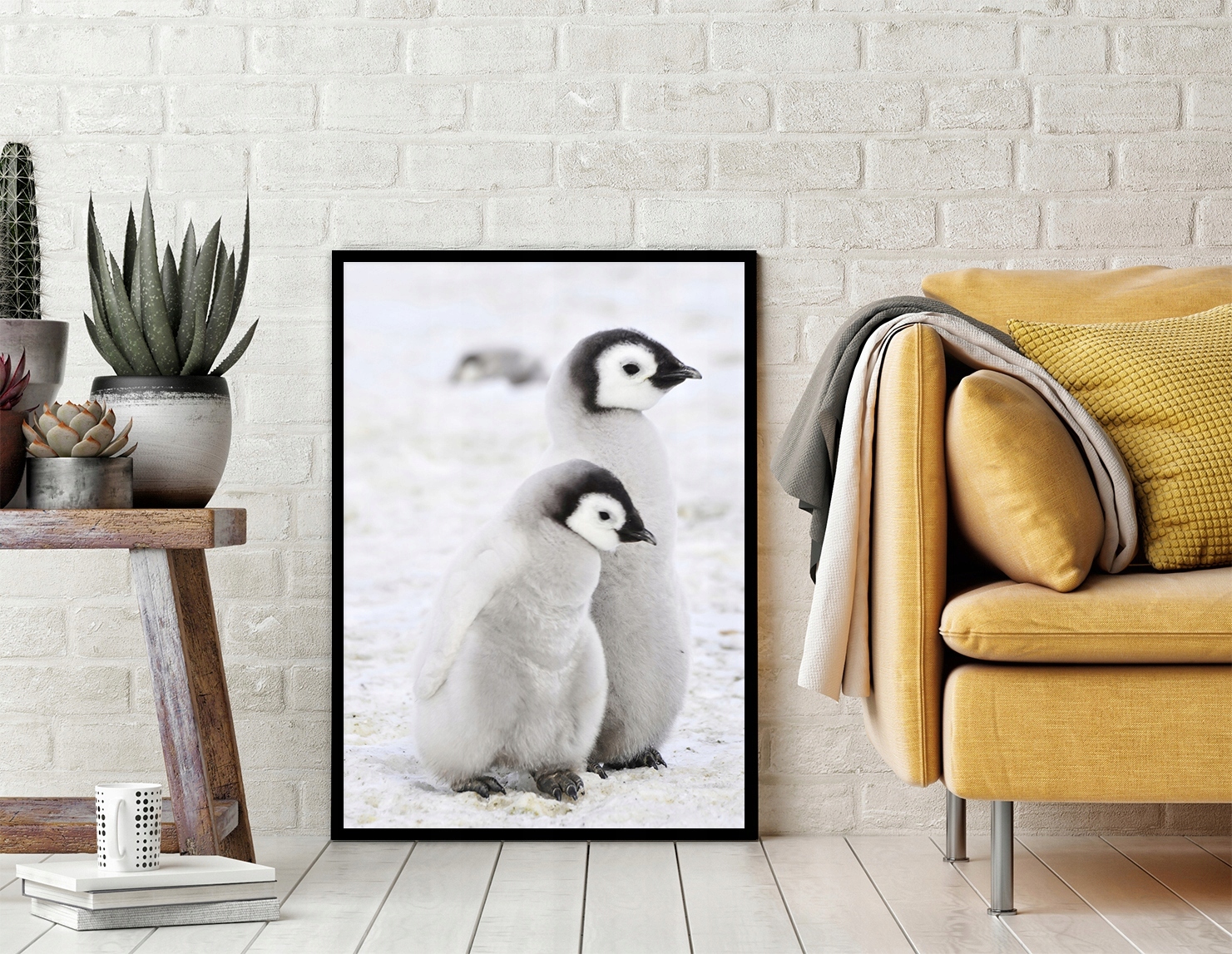 OBRAZ PLAKAT W RAMIE 43×33 cm Pingwinki P688