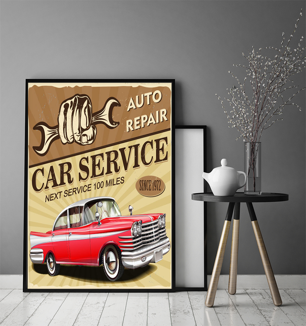 OBRAZ PLAKAT W RAMIE 53×73 cm Garaż Car P1860