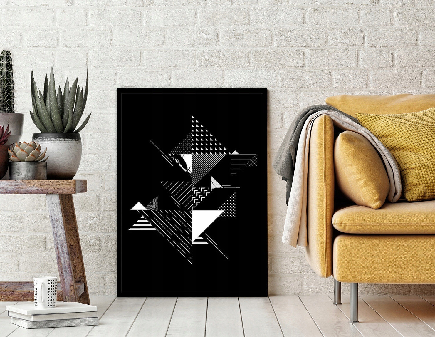 OBRAZ PLAKAT W RAMIE 53×73 cm Geometria P1077Oferujemy Państwu obraz: plakat + rama drewniana MDF. wymiary plakatu 70×50 cmwymiary obrazu łącznie z ramą 73×53 cm Specyfikacja: bezpośredni druk utwardzany światłem UV, bezpieczny dla środowiska.europejskie atramenty, pozbawione lotnych substancji szkodliwych. Cechuje je wysoka odporność na ścieranie (można je przecierać wilgotną ściereczką) i światło (nie blaknie z czasem!). Kolory są jaskrawe i nasycone, o fotograficznej jakości, a powierzchnia druku ma strukturę satynową.nie ma potrzeby zabezpieczania plakatu szybą czy też plexi, przez co skutecznie wyeliminowaliśmy problem odbić i refleksów świetlnych. Dzięki wykluczeniu z technologii produkcji, tego elementu – łatwo tłukącego się, pękajacego i często ulegającego zarysowaniom, ograniczyliśmy do minimum mozliwość uszkodzenia obrazu np. podczas transportu lub upadku.Uwaga: Plakaty oprawiamy w czarne ramki. Na życzenie Klienta istnieje możliwość zmiany koloru ramki na inny, z naszej oferty.Nasze obrazy, to kompletny produkt, gotowy do zawieszenia na ścianie! Obraz zawiera: plakat High Resolution – bezpośredni cyfrowy druk UV wysokiej jakościramę drewnianą – jest lekka, a zarazem trwała i ponadczasowametalową zawieszkę umocowaną z tyłumetalowe blaszki, przymocowane do ramy