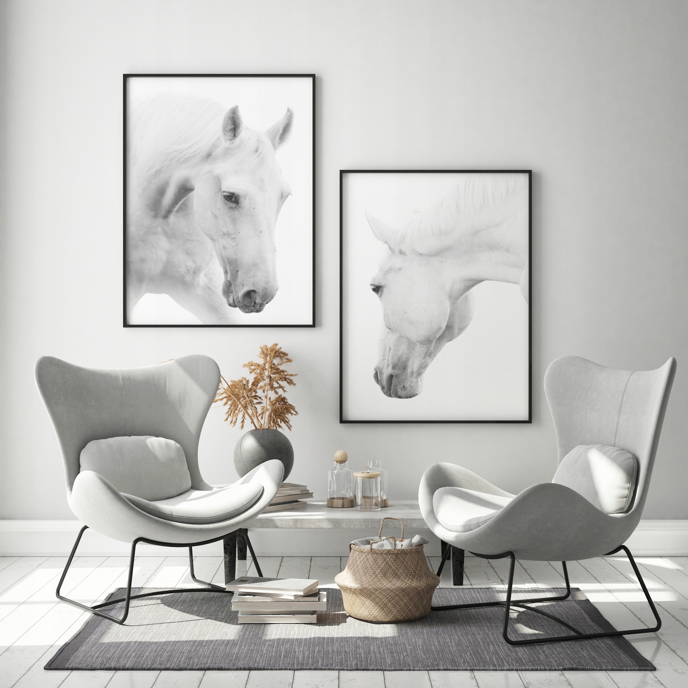 OBRAZ PLAKATY W RAMIE 53x73cm Dyptyk Konie P710