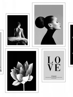 KOMPLET Galeria 6szt Plakaty BEZ RAMY KPMA 355 Oferujemy Państwu wyjątkową propozycję: KOMPLET 6 sztuk obrazów BEZ RAM. Jest to komplet plakatów bez ramek, który został idealnie skomponowany pod względem graficznym, kolorystycznym i rozmiarami – tak, aby doskonale prezentował się na ścianie, jako galeria. Aukcja dotyczy 6 sztuk plakatów bez ram, w następujących rozmiarach: 4x obraz 30×40…