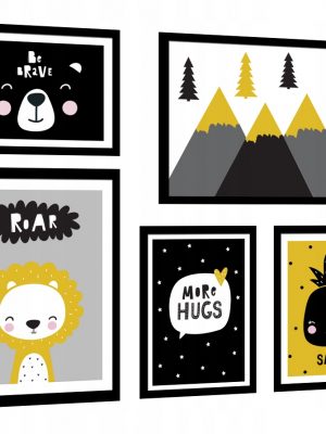 KOMPLET 5szt Obrazy Plakaty w ramie Zwierz KD131MINI GALERIA plakatów /pokój dziecięcy Oferujemy Państwu wyjątkową propozycję: KOLEKCJĘ obrazów. Komplet plakatów, który został idealnie skomponowany pod względem graficznym, kolorystycznym i rozmiarami – tak, aby doskonale prezentował się na ścianie w pokoju dziecka, jako mini galeria. Aukcja dotyczy 5 sztuk plakatów w następujących rozmiarach: 2x obraz 33×43 cm…